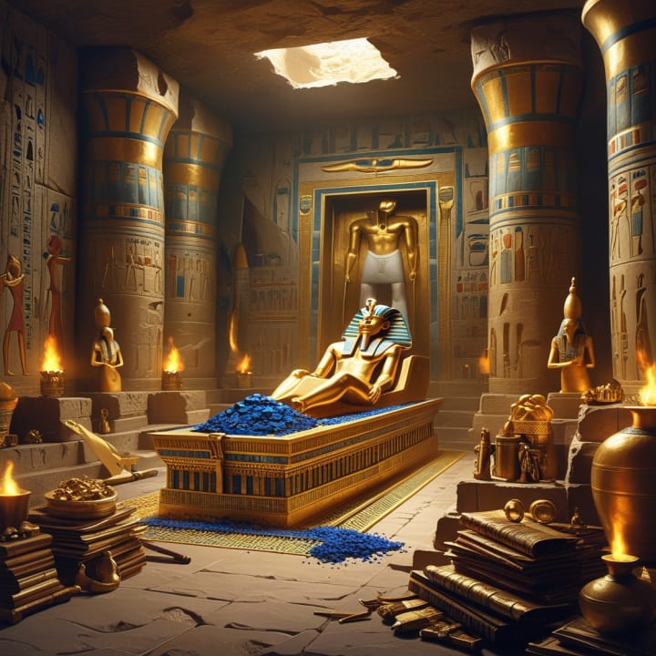 Certain narratives propose that the tomb was sealed within a sacred area of the Theban Necropolispotentially in an undiscovered wadi or concealed chamber. According to ancient writings and oral traditions, this tomb was adorned with rare blue faience tiles, alabaster walls, and filled with offerings from Nubia, Crete, and Mesopotamia.