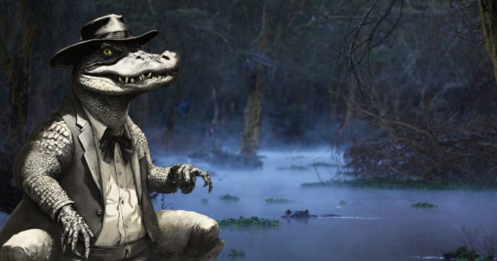 A caimán in the river often requires a swift exit, easily disguised in the muddy waters, only their eyes seen. For Saúl, this was perfect; he would drink the red potion and be able to spy on the women while remaining incognito.