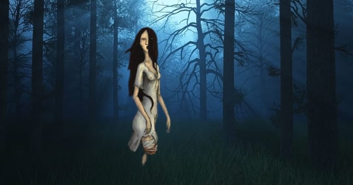 This hideous spirit belongs to that of a woman who deceived her husband. When he discovered this, he wanted to leave her and go elsewhere with her children, but she, filled with fury because her husband would leave, murdered her children in the river. Then she, sorry for what she had done, jumped into the water and drowned. Since then, she has wandered the world crying for her children.