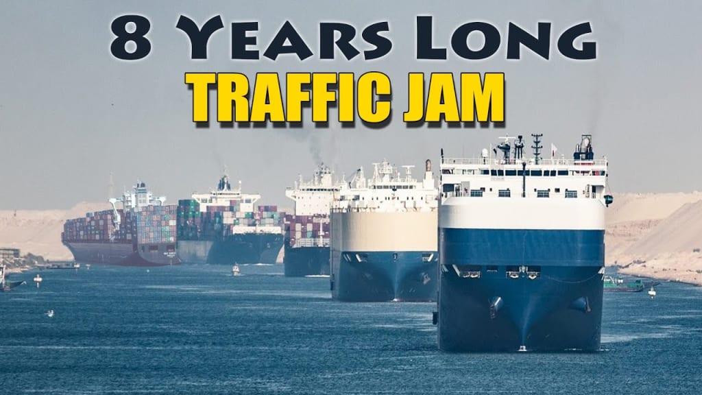 After being shut for nearly a decade, traffic in the Suez Canal resumed. Never in history has there been a traffic jam this long—and likely never will be again.