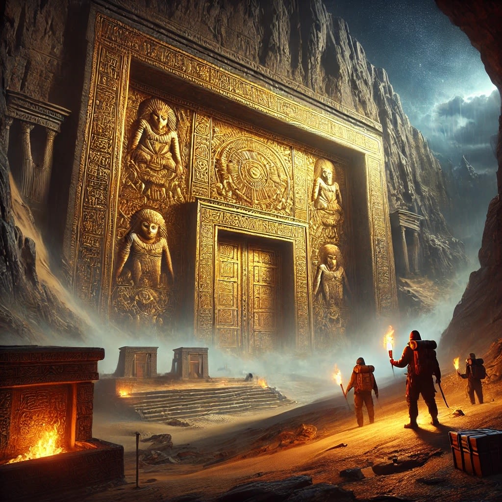 Beneath the desert lay an underground city, perfectly preserved. Stone buildings lined empty streets, statues stood untouched, and golden artifacts shimmered in the torchlight. The city appeared as if its people had vanished in an instant, leaving everything behind—an eerie snapshot of their last moments. The grand structures seemed to defy time, untouched by the centuries that had passed above ground.