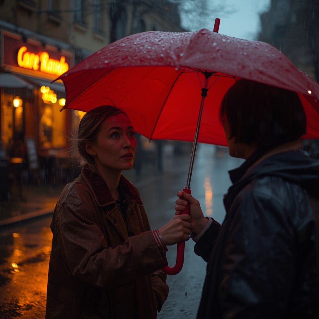 Rain began to fall. Not heavy, but steady enough to make the world feel cold. I opened my umbrella and held it so it covered both of us. “You look like you’ve had a rough day.”