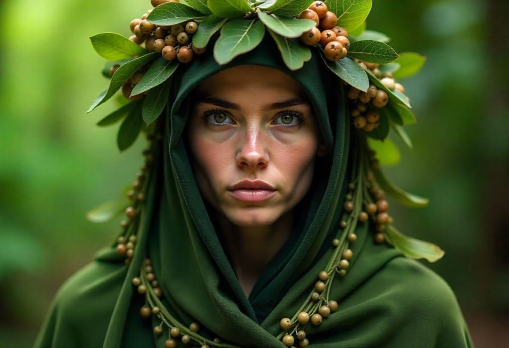 La Madremonte, referred to as La Madre de la Selva (Mother of the Jungle), is a revered figure rooted in indigenous folklore and colonial narratives. Her name embodies her authority: “Madre” meaning mother, and “Monte” representing mountain or forest. She is typically portrayed as a majestic woman adorned with foliage, vines, and moss, with hair resembling a wild tangle of greenery. Her eyes are described as glowing with a green light, symbolizing the profound depths of the forest she safeguards.
