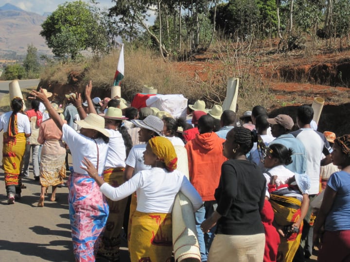 In Madagascar, the Famadihana ritual—known as "The Turning of the Bones"—is a grand ancestral celebration where families exhume the remains of their deceased loved ones, wrap them in fresh cloth, and dance with the corpses to live music.