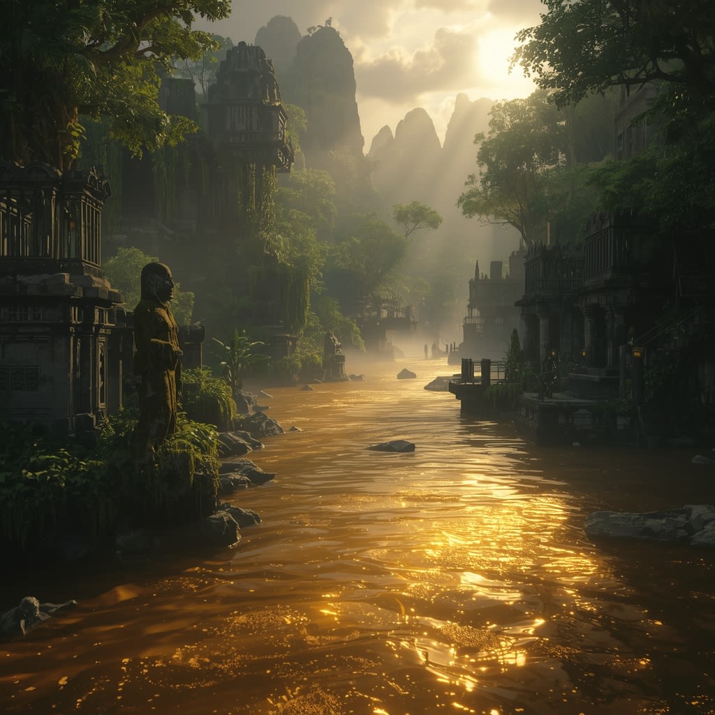 The Golden River became inseparably tied to El Dorado, a legendary ruler or city said to be overflowing with gold. According to early accounts, a king would cover himself in gold powder and bathe in a sacred lake—often believed to be connected to a golden river system.