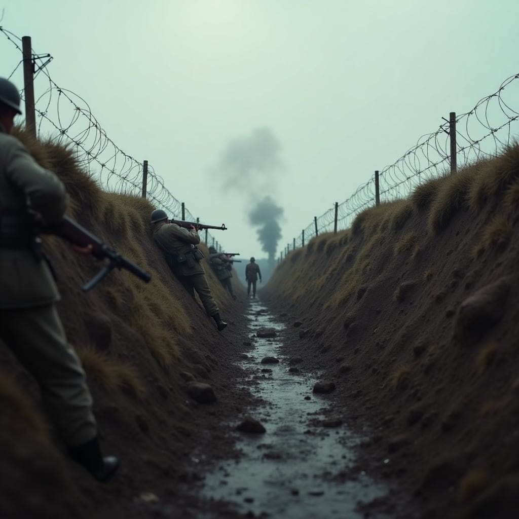 The Western Front soon became a static hellscape of trench warfare. Soldiers lived in narrow ditches, surrounded by sandbags, barbed wire, and the constant stench of decay. The sound of artillery was relentless; the earth trembled under bombardments that could last for days.