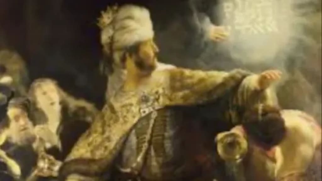 Suddenly, everyone in attendance was spellbound by a most spectacular sight. They watched in horror as the fingers of a human hand suddenly appeared and began scrolling across the "lamp-illumined, whitewashed palace wall ."