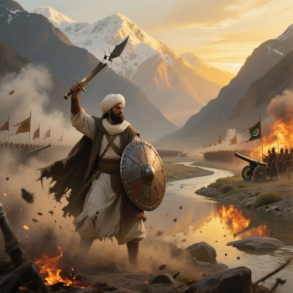 The first cannon roared. Smoke rose across the river. The ground shook as stones and fire tore into the defenders’ lines. Still, the men of Swat did not retreat. Arrows rained down, and warriors charged with cries of “Allahu Akbar!” echoing through the cliffs.