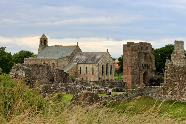 The monastery quickly rose in prestige and wealth. It was home to a revered community of scribes, missionaries, and ascetic holy men who devoted their lives to contemplation, scholarship, and the production of sacred texts. One of its most significant cultural contributions was the creation of the Lindisfarne Gospels—a richly illuminated manuscript dating from around 715 CE, combining Insular art styles with Christian iconography. It remains one of the finest examples of early medieval book-making in Europe. The monastery also housed the relics of Saint Cuthbert, a hermit-bishop who died in 687 CE and was later canonized. His shrine became a destination for pilgrims, further enhancing the island's religious status and drawing donations and gifts in the form of gold, silver, cattle, and valuable manuscripts.