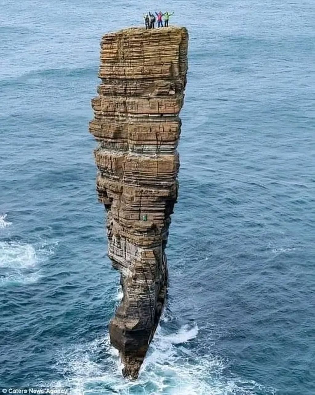 On the rugged west coast of Hoy, the second-largest of Scotland’s Orkney Islands, stands an extraordinary natural wonder—the Old Man of Hoy. Rising a staggering 137 meters (449 feet) above the churning waters of the North Atlantic, this towering sea stack is not only a geological marvel but also a symbol of the untamed power of nature. Formed through millennia of relentless erosion, the Old Man of Hoy is composed of red sandstone perched on a base of basalt, making it one of the tallest and most famous sea stacks in the British Isles. Known for its dramatic, solitary form against the open sea, the Old Man of Hoy attracts both adventurous rock climbers and curious tourists, who are captivated by its imposing presence and the unique challenges it offers.