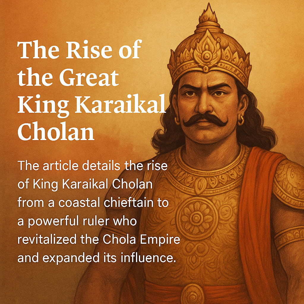 This article explores the dramatic ascent of King Karaikal Cholan—from his beginnings as a regional chieftain in a coastal port to his transformation into a powerful monarch who unified regions, expanded Chola maritime dominance, and reignited Tamil cultural pride.