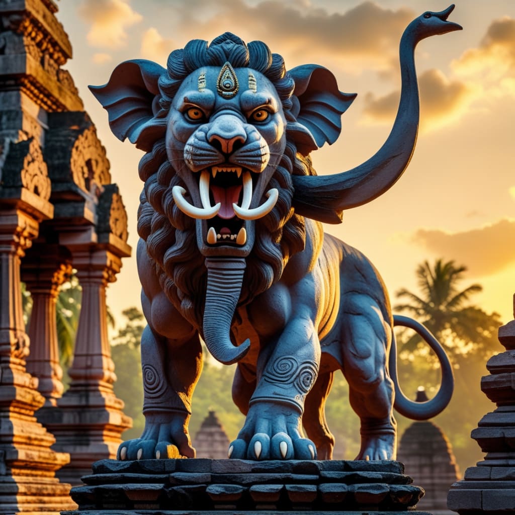 The lion (Simha) and elephant (Gaja) represent long-standing symbols of authority and nobility. Merging these could have produced a super-symbol for dynasties such as the Cholas and Vijayanagar rulers to assert their divine sovereignty and invulnerability.