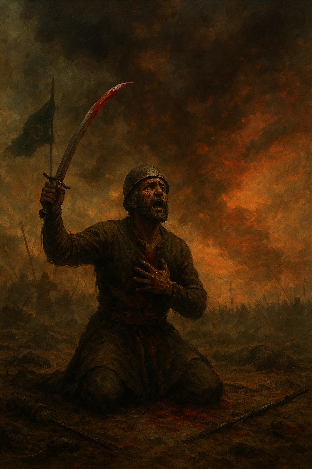 In the chaos, he saw his commander fall, struck by an arrow. For a moment, silence fell among the troops. No one moved. Then Asad stepped forward, seized the fallen banner, and shouted with all his might,