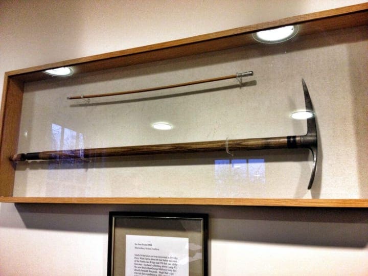 This axe was found 8,450 meters above sea level. It was the first item recovered from the fatal end of the two men.
