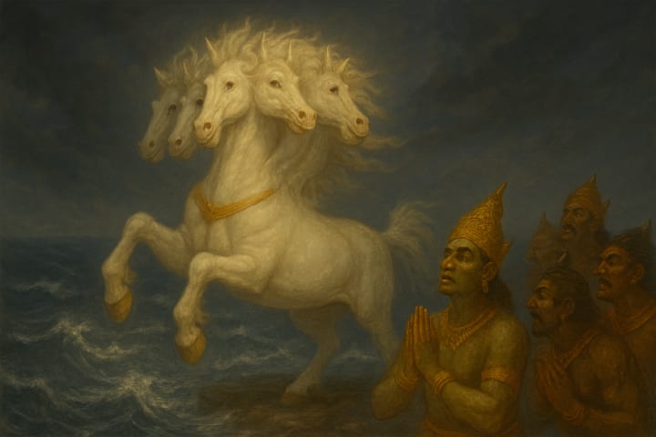After that, Uchchaihshravas appeared—a flying, seven-headed horse. The Asuras wanted him, and this time, no one argued.