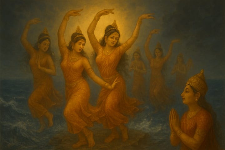 Next, the Apsaras emerged—celestial beings of beauty and art, graceful and free, dancing as if they’d never known fear or fatigue.