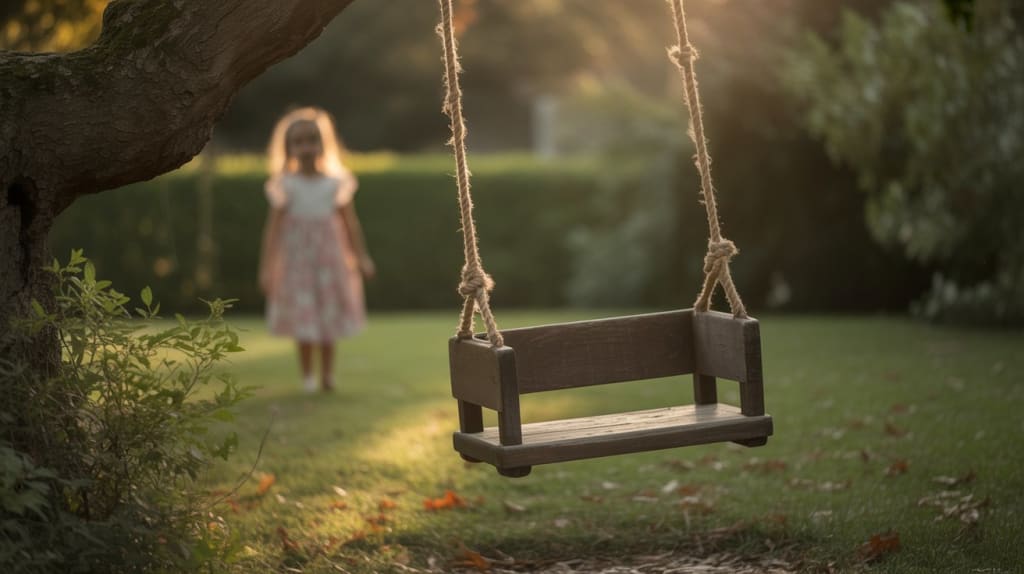 The old garden behind my childhood home is silent now. The grass grows wild, the flowers bloom without anyone appreciating them, and the color of the fence has faded in years of sun and rain. But one thing remains — the swing.