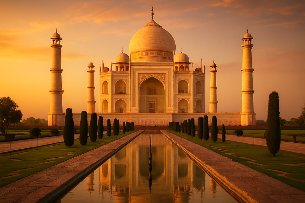 The Taj Mahal, often called the Crown of Palaces, is one of the most breathtaking wonders of the world. Located in Agra, India, it has become a symbol of eternal love and devotion. Built in the 17th century by the Mughal Emperor Shah Jahan in memory of his beloved wife Mumtaz Mahal, this monument is more than just a masterpiece of architecture—it is a story carved in marble, echoing love, loss, and immortality.