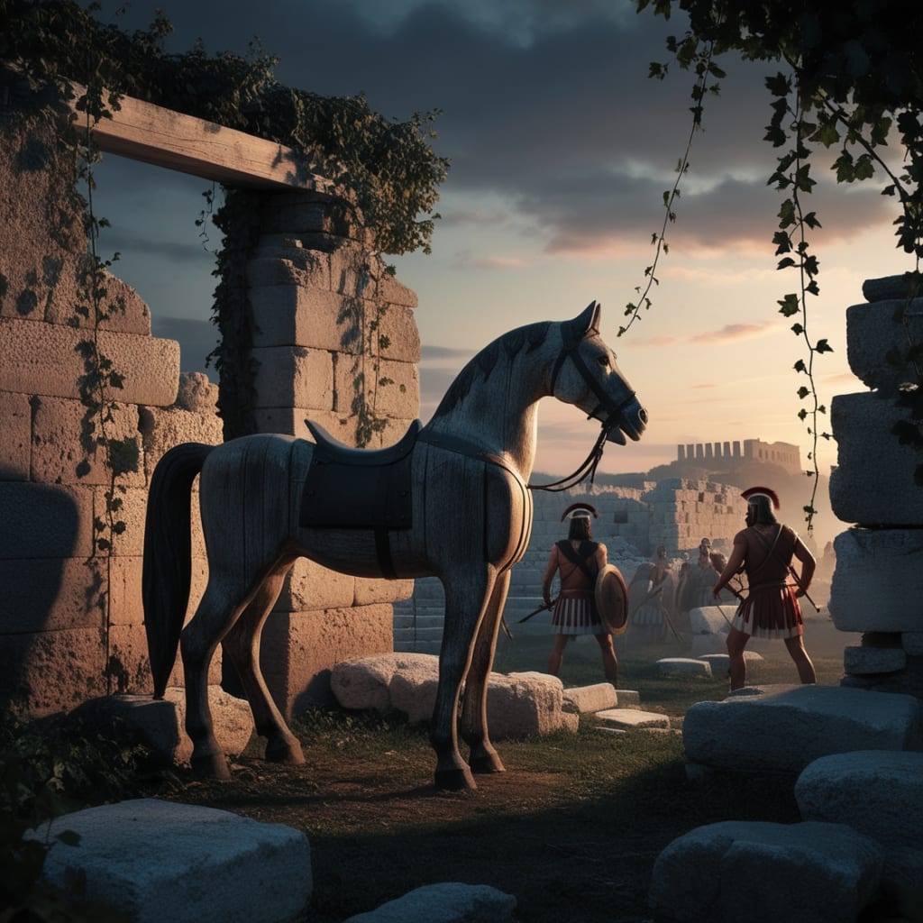 Others propose that the horse symbolizes a form of subterfuge common in ancient warfare—possibly the use of hidden soldiers, clever traps, or even psychological warfare designed to demoralize the enemy. The Trojan Horse, therefore, could represent the idea that no matter how strong a city's walls, cunning and strategy can overcome brute force.