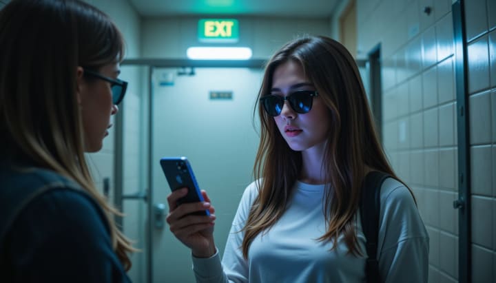 She smiled too brightly. She laughed too hard. Her sunglasses never came off, though we were indoors.