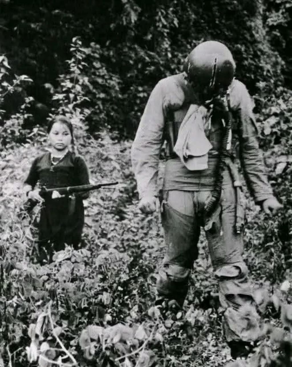 The young girl in the photograph was most likely part of the Viet Cong or the North Vietnamese militia. These were the groups that, in their desperation, turned to children as young as twelve — some recruited to spy, some to carry weapons, some to fight, and some even to sacrifice their lives for the cause.