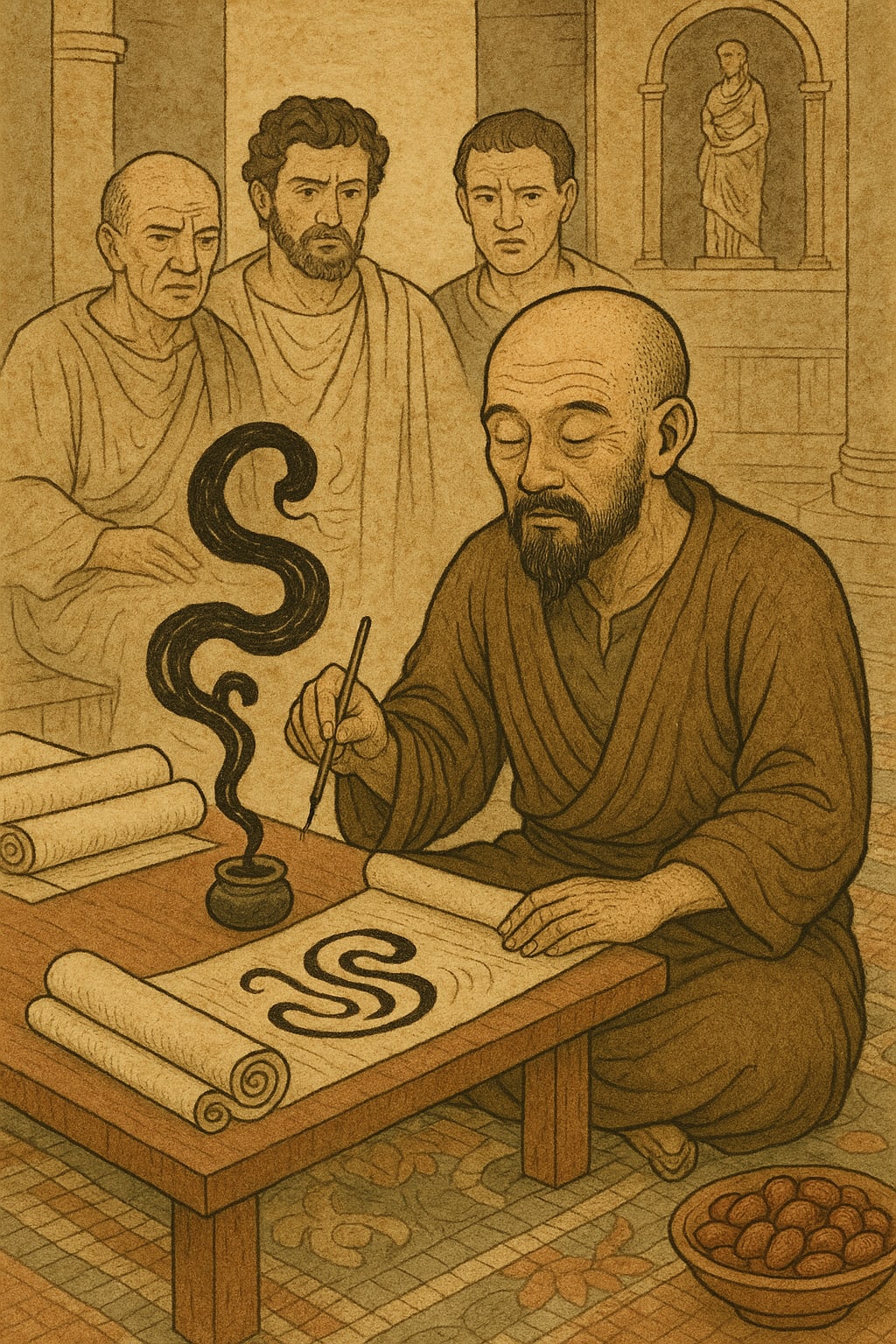 He told no one his name. But a Hellenized Babylonian librarian found a passage in a crumbling Chinese codex.