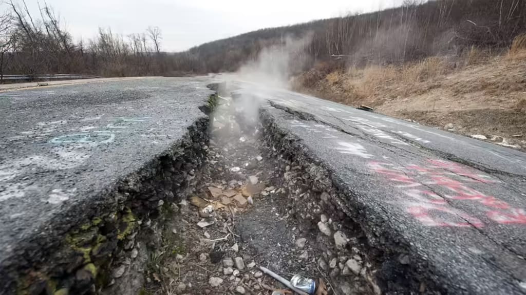 Centralia, Pennsylvania, once a thriving mining town, is now a ghost town.