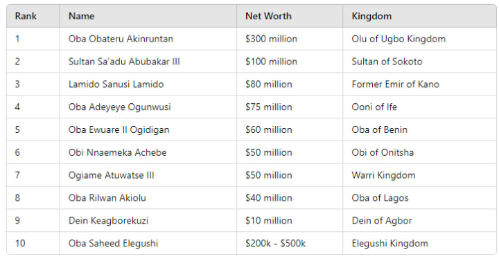 Summary of the Richest Kings in Nigeria