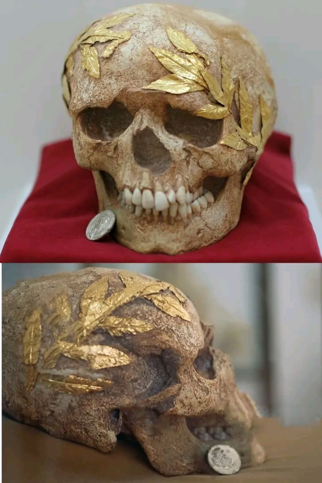 The skull, crowned with its golden laurel wreath, was unearthed during excavations in the vicinity of ancient Lato. The wreath’s intricate design and fine craftsmanship suggest it was a prestigious item, likely awarded to honor the young individual’s athletic accomplishments.