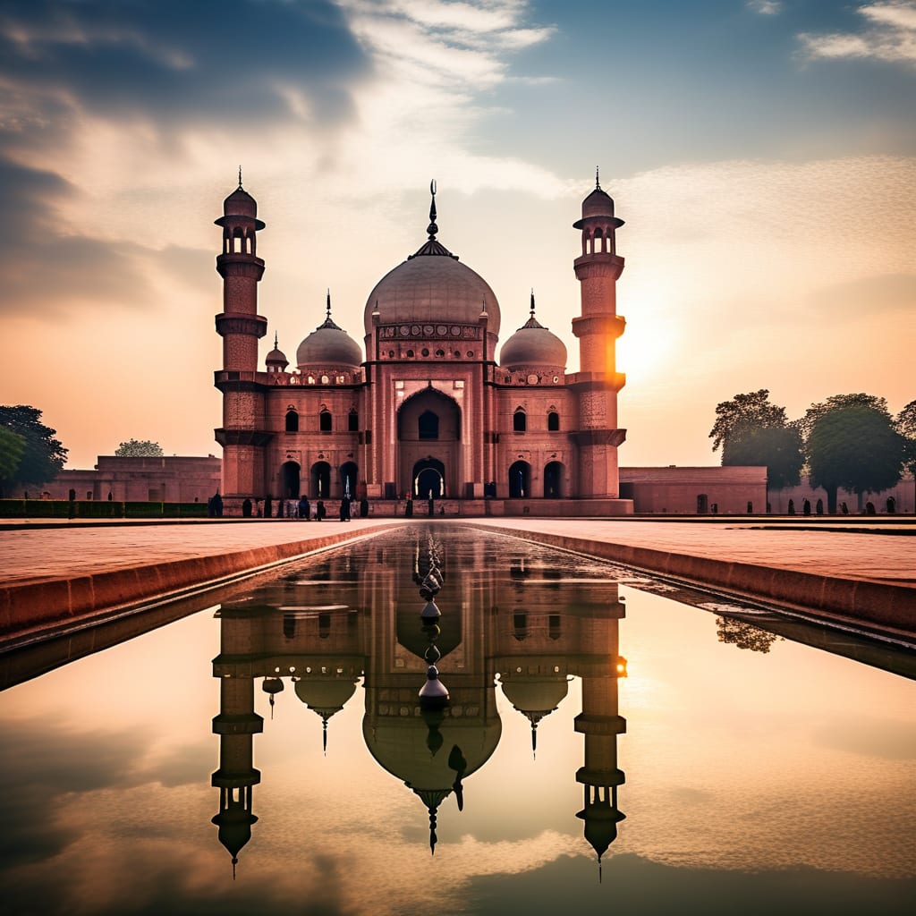 In the heart of Lahore, Pakistan, amidst the vibrant tapestry of history, stands the Badshahi Masjid—a testament to the grandeur and architectural brilliance of the Mughal era. As the sun sets and the call to prayer echoes through the air, the mosque reveals itself in all its majestic glory.