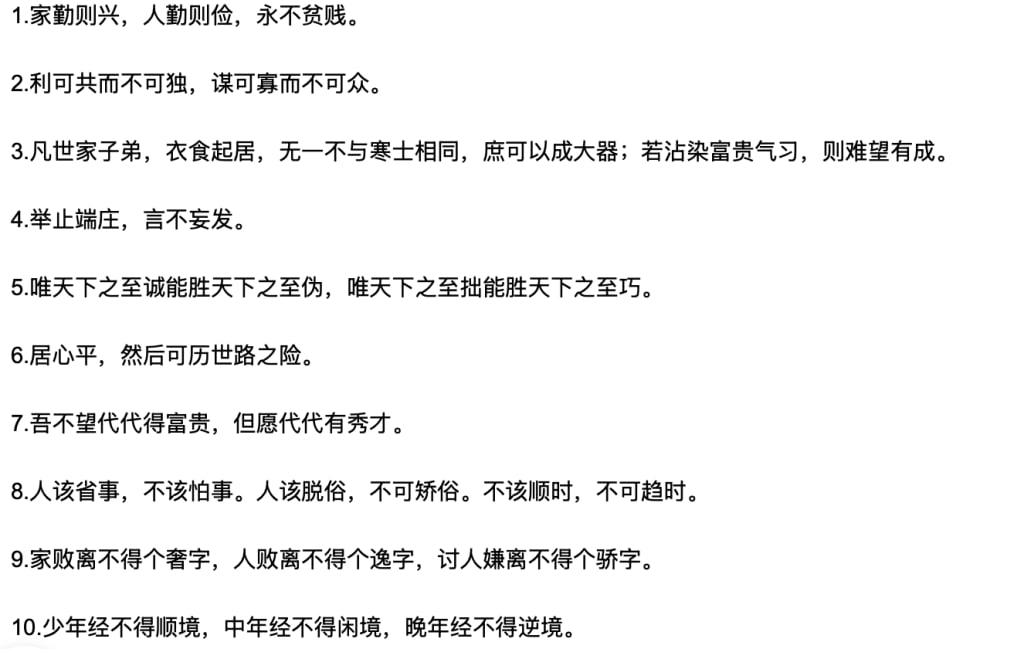 Zeng Guofan's Ten Principles for Self-Cultivation