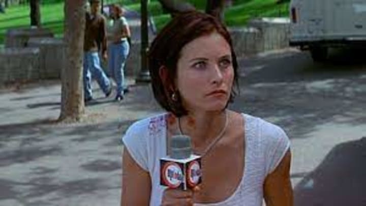 Gale Weathers, played by Courteney Cox , who starred in Friends (1994) , Shining Vale (2022) and the rest of the Scream franchise is seen as a blood-thirsty reporter , who happens to be punched (rightly so) by Sidney Prescott due to bad blood between them and her exploitation of the killing on her books. Gale's development grew as she became a trusted ally and friend to Sidney (except with her on/off relationship with Dewey) but a legacy character, beloved by fans by her bravery and her set to doing the right thing.
