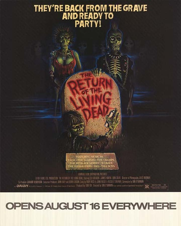 The summary for Return of the Living Dead is as follows. Two employees that work at a medical supply warehouse accidentally release a deadly gas into the air. This gas causes the people who die to re-animate, and all they want are the brains of the living people in Louisville, Kentucky.