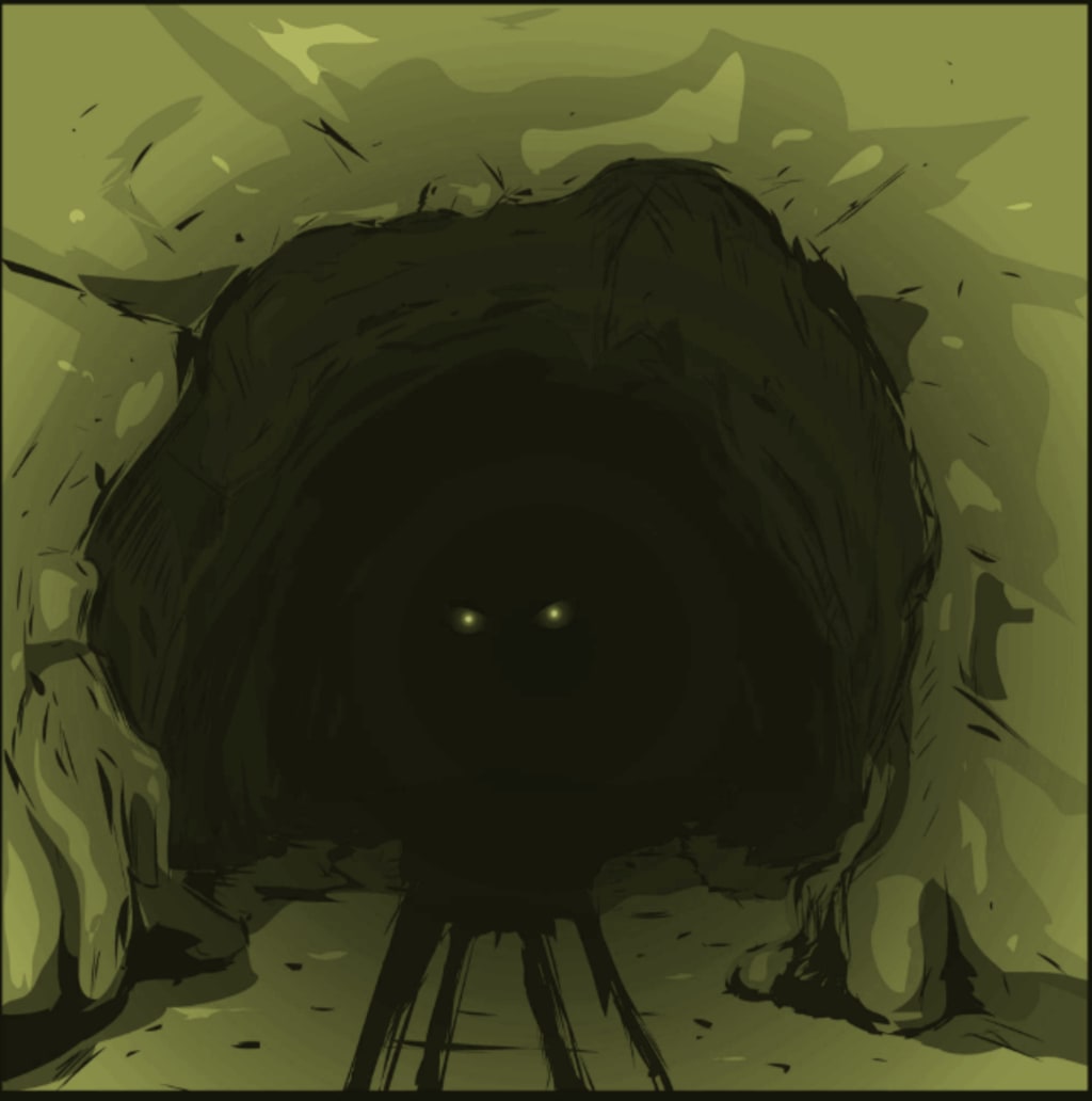 Ellis continued down the path, ducking under the low cave ceiling and squeezing past sharp facets of wall. Where the rest of the cave had been fairly accommodating of two people, this section could scarcely fit one. He pushed himself through an opening barely chest-wide in width and promptly lost his footing. A pit swallowed him whole before he could even scream.