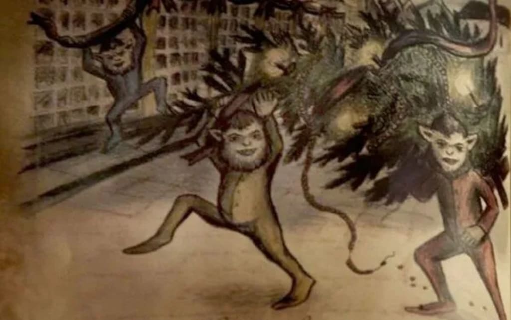 The next morning, the cops arrived because of the neighbors noise complaints. Inside, they found something so disturbing, most of them refused to go inside. When walking in, they found a ton of mess, like a party had happened. But that party went wrong, very wrong. The perfectly white walls were now smeared with blood, the floors had a trail of food. The stench, it smelled like rotten food mixed with something else nasty. Furniture appeared sideways as they walked through the house, like clumsy people knocked them over. After heading upstairs, they found a woman, crying in a corner. Let's not go into details about that. Then the boy's room. It seemed as if his head had exploded, literally. It was an awful sight. Under the bed, a man's skin who they believed to be his father, looked lifeless. Someone had worn the skin or something. But what was branded over everyone's bodies? Kallikantzaroi.