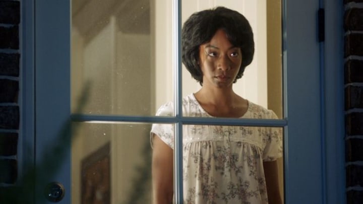 The first shot we're going to look at is the one above. Jordan Peele is often known for his good close-ups and whereas, in Get Out (2017), the main close-ups were of mostly extreme expressions, this one is fairly blank in comparison. I believe that Peele wants to show us that his close-ups have a different meaning than just extreme expression, they also represent something.