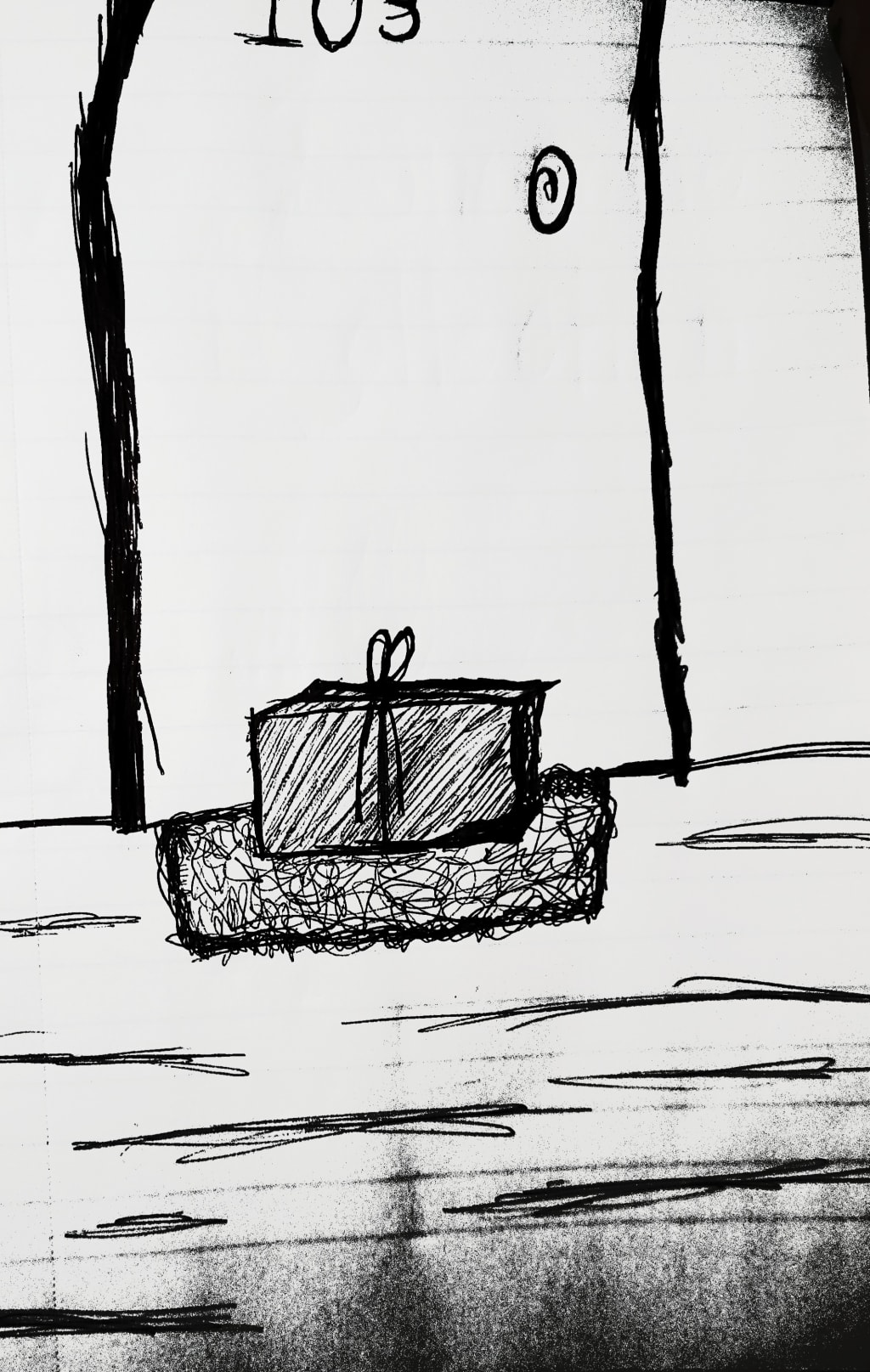 Monday night when he got home, sitting on the wiry mat outside his door. Was a shoe-box sized package covered in brown butcher’s paper. Fastened together with a corded string, there was nothing else identifying about it. Cautiously he gripped the box in his hands and lifted- it was light. Actually felt like there was nothing at all inside, gently he shook the box and still he heard nothing fluttering around inside. Lester decided no harm would come from bringing the package inside.