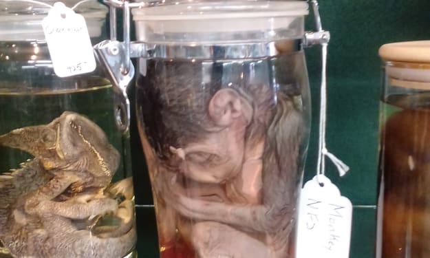 Before he even let himself into his house, he strolled through the tall weeds far into the field to where the arm still lay. The same location he had first attacked that stupid boy for trespassing on his property, sticking his nose where it did not belong! A cloud of flies buzzed anxiously as he squatted down and picked it up. He shook as many maggots as he could from it and without thinking twice began to consume the decomposing arm.