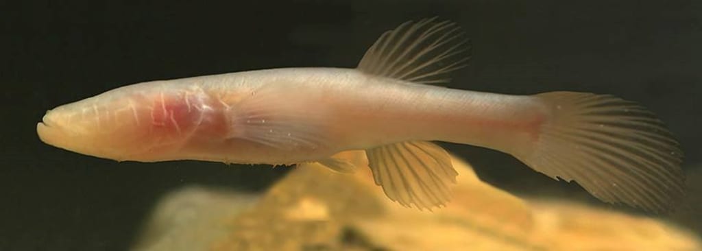 “Well, Nate, that’s a Mammoth Cave Shiner. It lives in total blackness for the entirety of its life; that’s why it’s transparent; that’s why it ain’t got no eyes.”