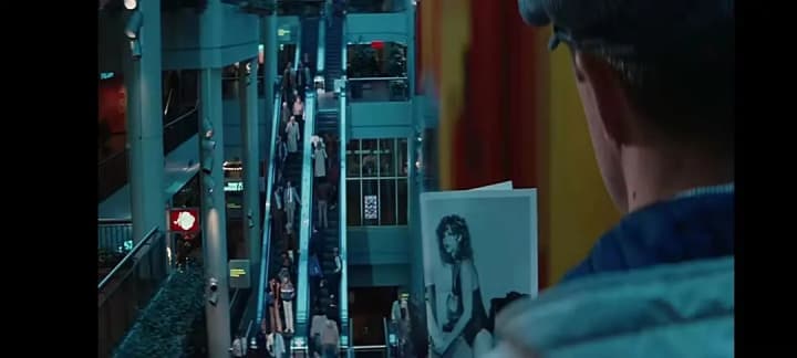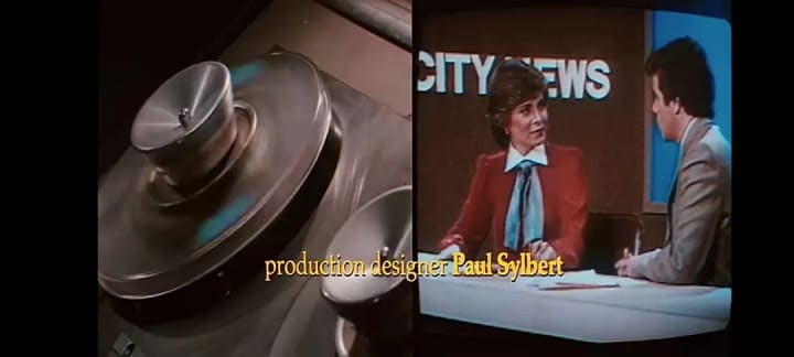 The split-screen shot in "Thread" shows Terry, a sound engineer for the film, at work early in the film, while the television screen on the right broadcasts the news. The news of Philadelphia's Freedom Day celebration is complemented by the sound production and finishing of Terry on the left, whose job is to record sound effects for low-budget horror films. Given the ending of Sally's murder at the Freedom Day celebration, this split-screen shot is very subtly intertexted with subsequent plot developments. At the same time, the murder at the end, to some extent, represents Parma's disappointment and helplessness from video to reality. This splitscreen shot makes use of the juxtaposition of film production (video) and TV news (reality), in fact, alludes to the opposite attributes of the two, which are also magnified with the end of the news program. It ends with the TV picture shrinking into a corner and moving out of the frame.