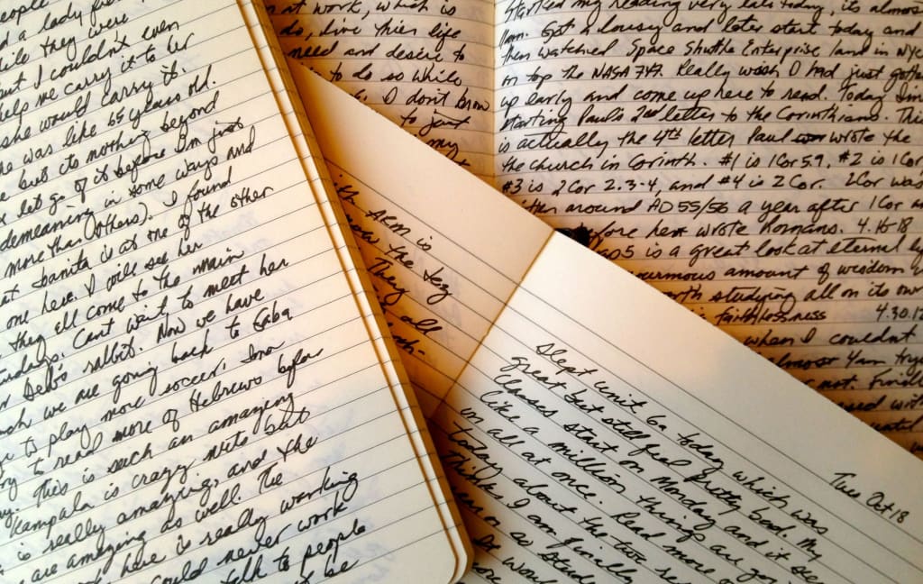 Body trembling with achy muscles, I drag myself back to bed and collapse onto the mattress. Blindly I reach back for the blankets only to feel the cool leather cover of a notebook beneath my hand.