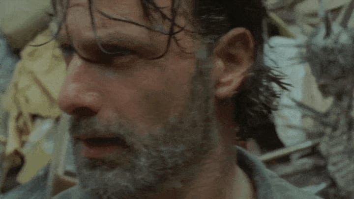 Looks like Rick has his work cut out for him with this new style of walker standing in his way. The walker, covered in metal blades and protected by a metal helmet, appears to be indestructible. Even for Rick, attempting to stop a walker like that will probably lead to him being stabbed or bitten. Although, since he is the star of the show, we shouldn't expect Rick to meet his end here.