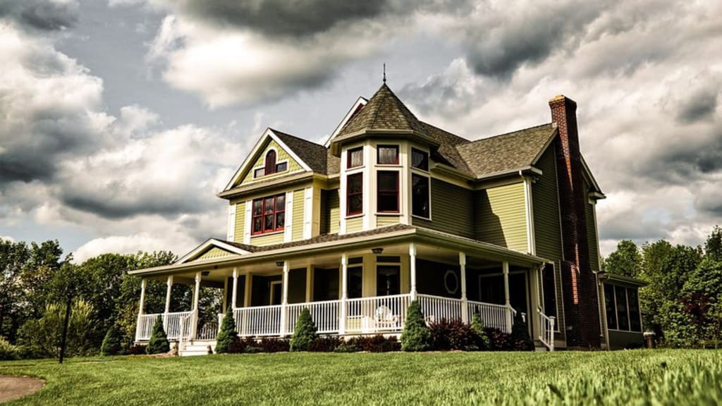 The house was yellow, shutters black. The mansard roof and ornate pillars gave it the perfect haunted Victorian feel Ella and Drake were looking for on their weekend stay in the north country. The golden sun hung low, the leaves of the trees surrounding were a burnt fiery orange. The black Beetle popped and cracked along the gravel as they pulled up the long winding driveway. What caught their eye the most though was the deep dark water to the west of the dwelling.
