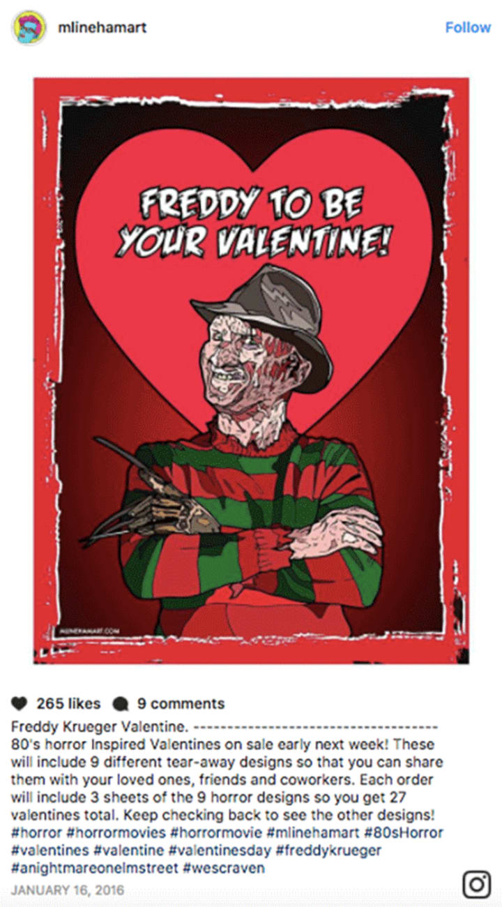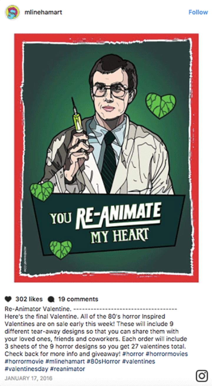 It is back to the '80s to riffing off everything from A Nightmare on Elm Street to The Lost Boys. Lineham has the average horror fan covered, so she may just forgive you for burying the mother-in-law in the back garden. Clearly a fan of the era of mohawks and monsters, Lineham's Instagram bio reads: