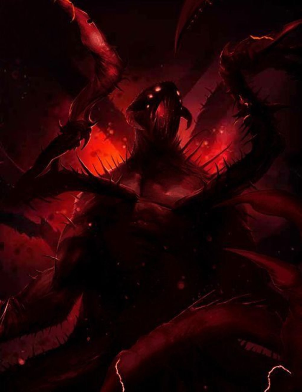 Finally, she stumbled upon a hidden clearing, bathed in an ethereal glow. In the center of the clearing stood a magnificent creature, its fur as black as night, its eyes a fiery red. The Bloody Creature towered over Amelia, emitting an aura of both danger and sorrow.