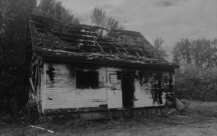 Kat turned and giggled as she slammed the back door. Smoke started to climb the walls and ceiling. My grandmother struggled and banged at the hardwood cupboard door, screaming out;