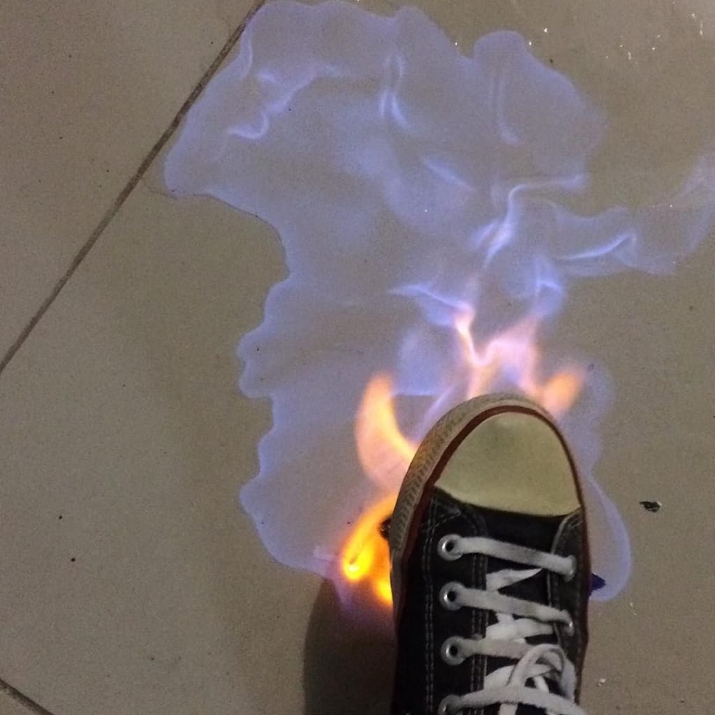 Instead, that old warmth began to grow inside her, rippling beneath her skin, crawling from the pages tucked against her. It ripped through the middle of the timeline first, consuming the French fries at her seventh-grade feet in an ironic second death. Pockets of embers erupted from the paper’s edges inward; they clawed their way from the middle-out, until nothing but the metal nail lodged in her door remained.
