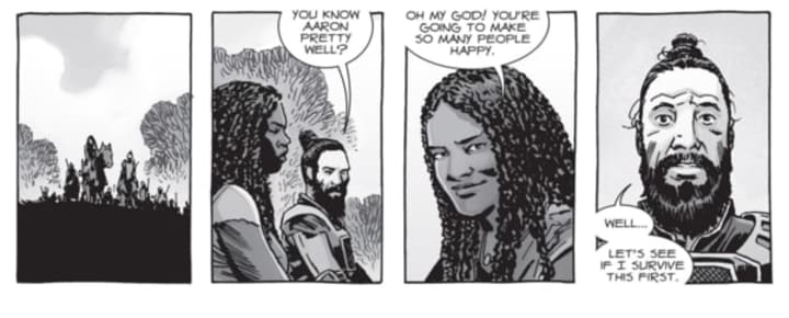 With so much death recently on the show, could Kirkman and co. spring another surprise romance on us? Fans were surprised to learn that Michonne and Rick had been shacking up behind our backs, but embraced a welcome departure from the #comicbook source material. Elsewhere we have seen Carl and Enid show their affections for each other, and there are hints that Eugene and Rosita could follow their comic paths by making it official. Although Daryl won't be finding solace in the muscley arms of Jesus, at least we can go back to shipping Caryl — that Carol and Daryl romance.