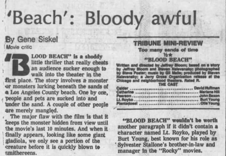 Upon release, critics pounced. Blood Beach was called plodding, underlit, and absurdly tame for a monster movie. The big effects shot — a flower-like mouth opening in the sand — came late, leaving audiences restless. Even the cast’s solid names couldn’t save it.