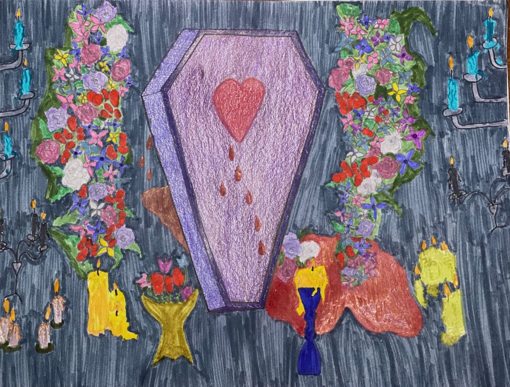Fussing with the organza of her skirts to keep it from crushing too badly he felt something cylindrical tucked into the waistband and, curious, he withdrew it. A thin scroll with his name scrawled along the seal. His love had written him one last note as a mortal. Unfurling it, he read in the light of a candelabra’s tapers: